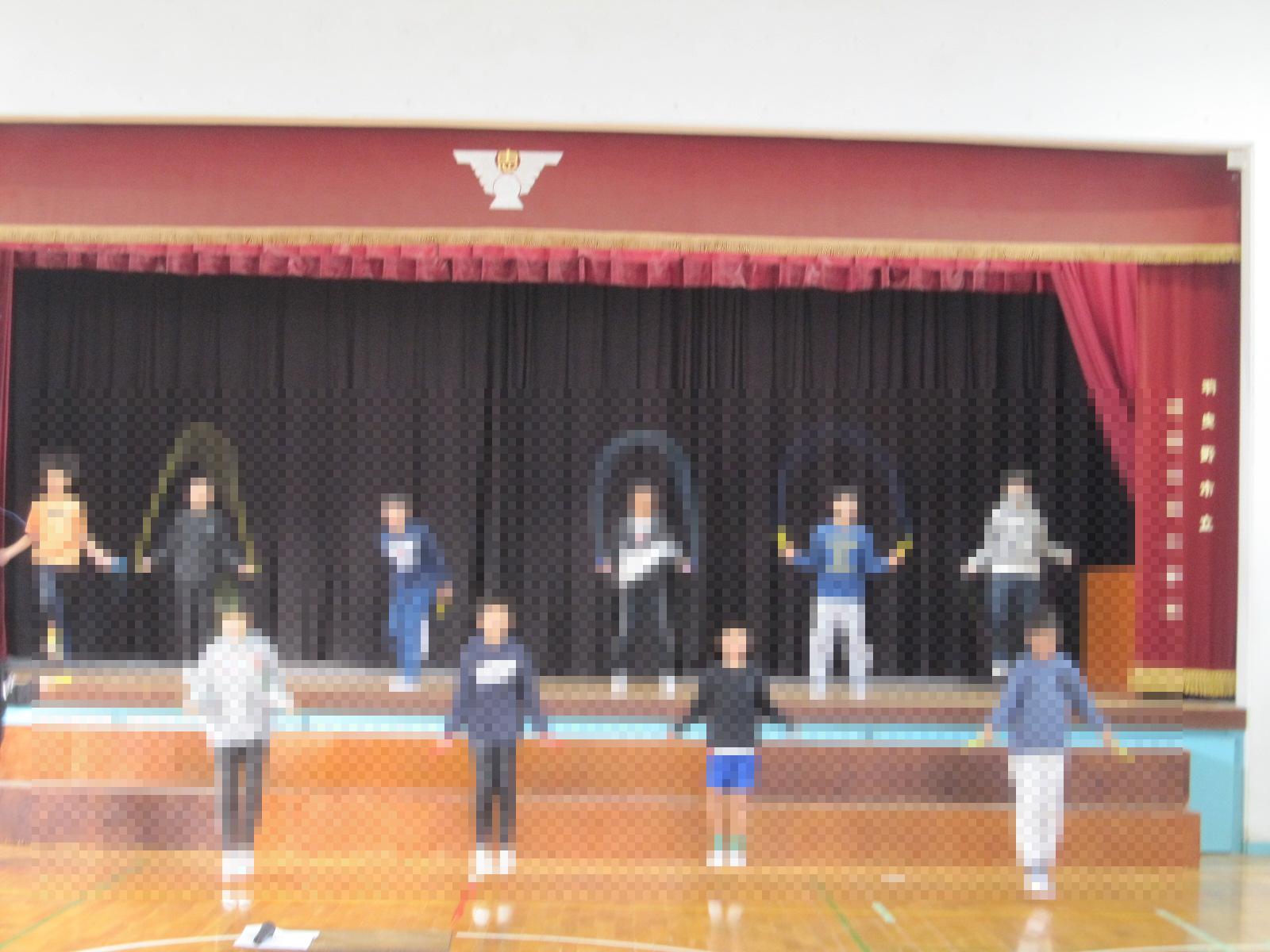 朝、なわとび集会を行いました。初めに、様々な跳び方を確認した後、曲に合わせてみんなでなわとびをしました。体育委員の子たちが前で見本をみせてくれていました。1年生はまだ難しい跳び方がありますが、自分で跳べるところをがんばっていました。休み時間にも、縄跳びをする子が増えてきています。「先生、見て!」と声をかけてくれる子もいます。