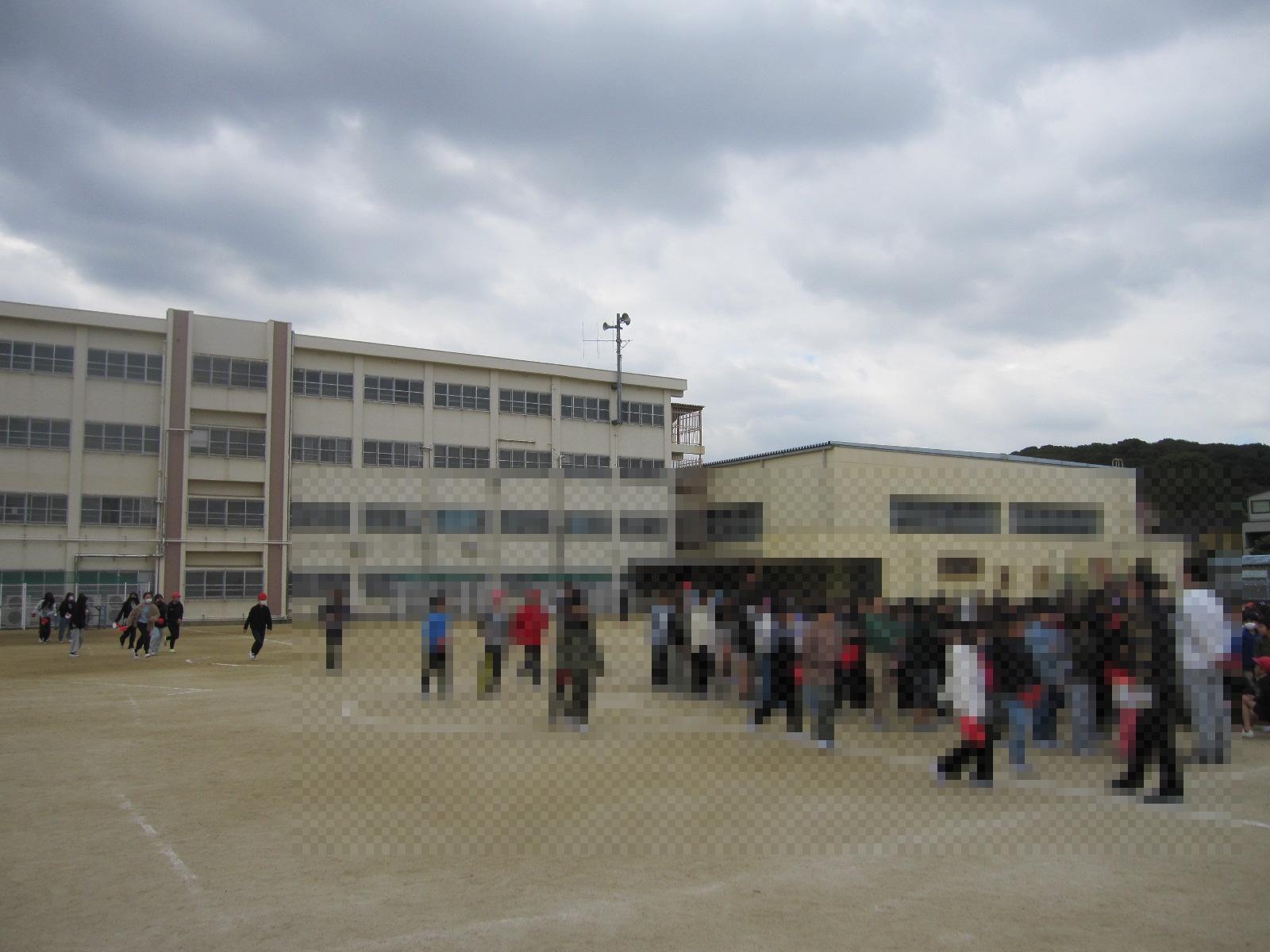 本校を含む羽曳野市内の小・中学校では、震度5弱以上の地震が起きた場合は、