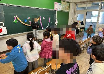 休み時間では、子どもたちは、冬休みの出来事をたくさん話してくれました。