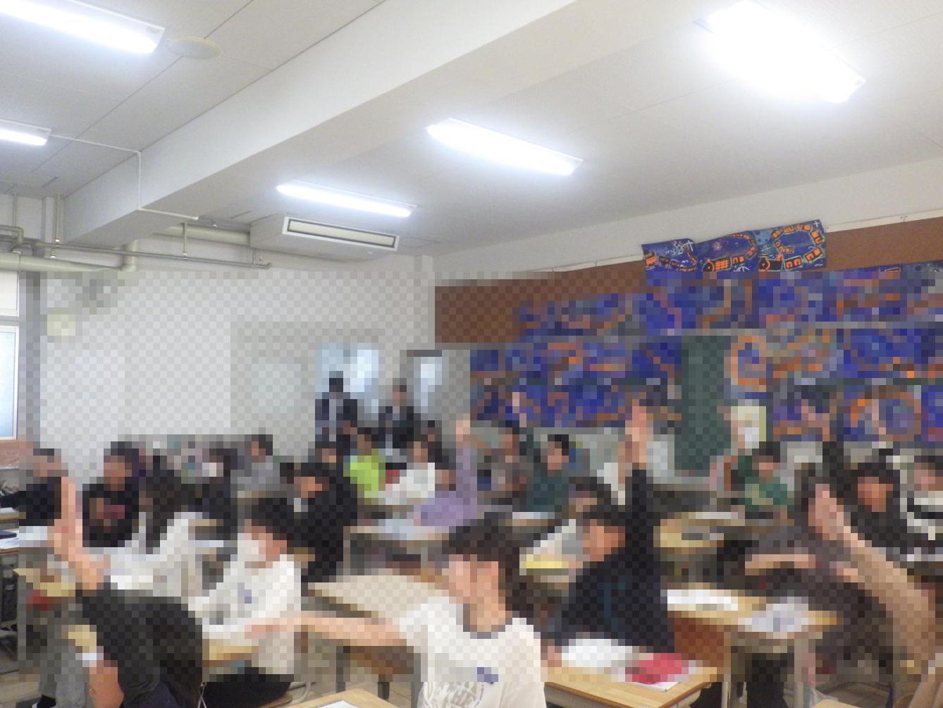 羽曳野市人権擁護委員の方々にきていただき、3年生の各クラスで特別授業をしていただきました。 男らしい色?女らしい色?という動画を見て自分の好きな色とその理由について考えました。子どもたちは、人によって好きな色は違うということを知り、人はどんな色を好きになっても良いというお話を聞きました。それぞれみんな違うところがあり、それで良いということを学びました。「みんなちがってみんな良い」「そんな違いをみとめ一人ひとりの人間を大切にする」それが人権なんだということを教えていただきました。人権擁護委員の方々、ありがとうございました。