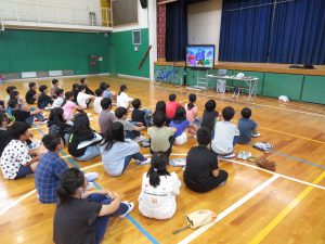 本日、3年生から6年生の児童を対象に歯の磨き方教室を実施しました。歯の健康は体の健康につながることや、歯磨きがしっかりできていないと歯や歯茎がどんな状況になってしまうのかということを歯科衛生士さんに教えていただきました。