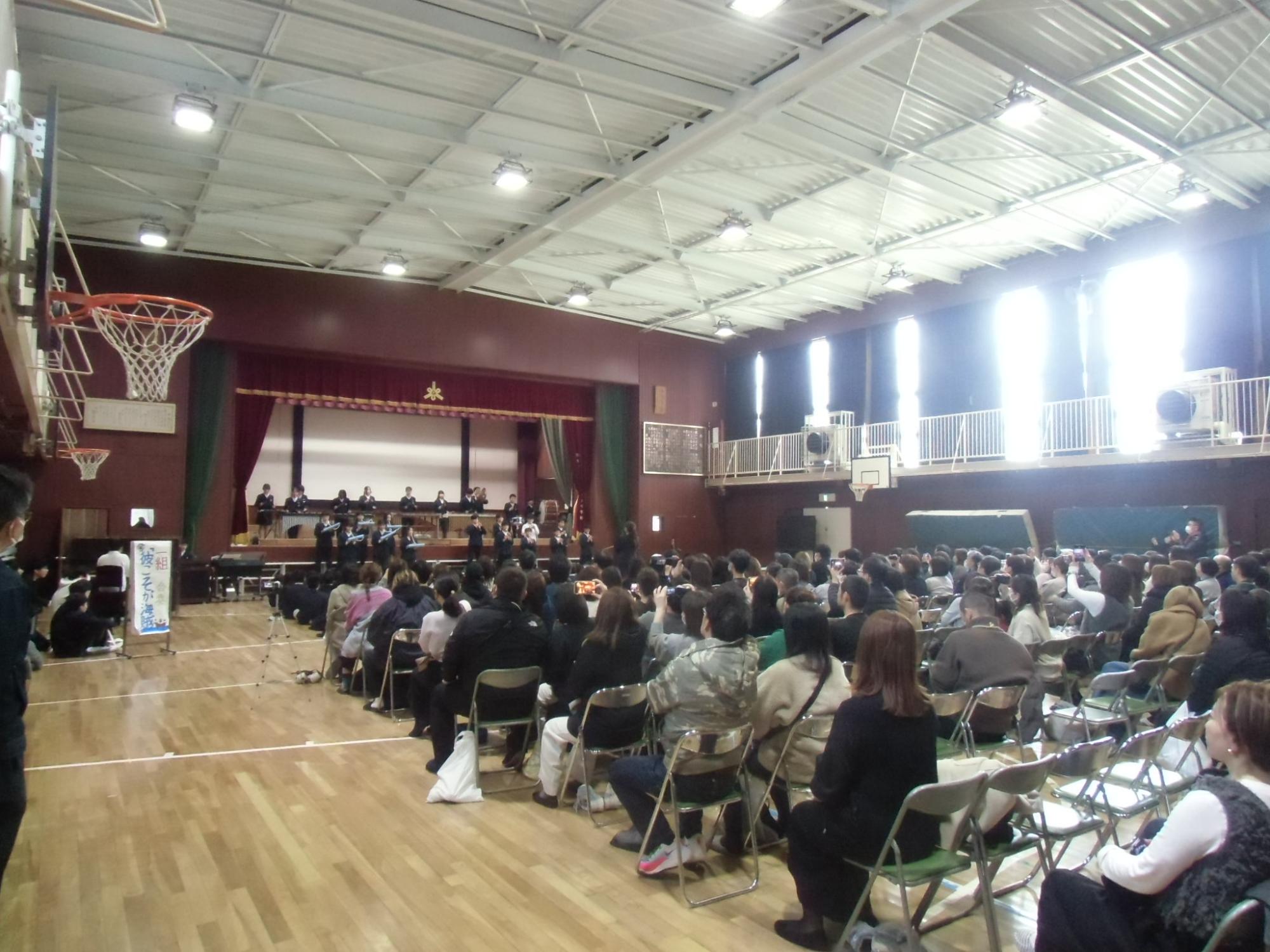 6月1日(木曜日)の3時間目に警察音楽隊の方が体育館で交通安全のお話と楽器を使って演奏をしてくれました。