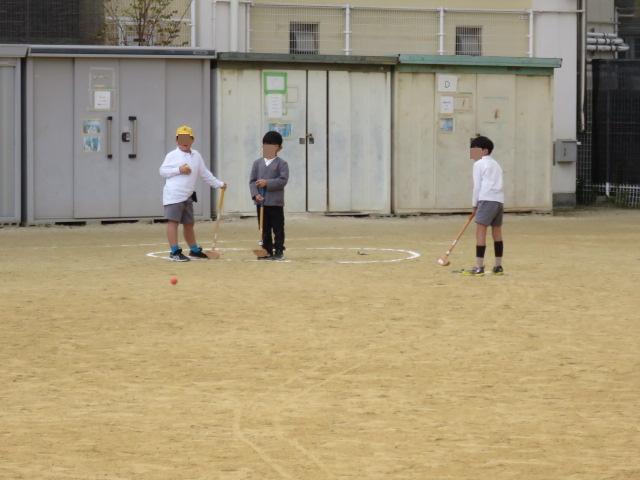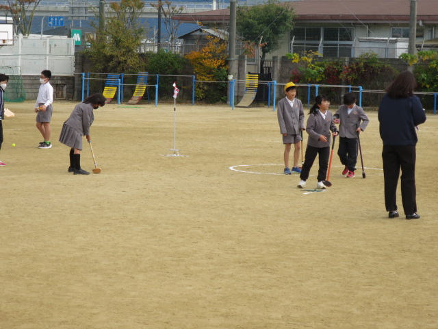 11月18日火曜日、運動場にてグラウンドゴルフを体験しました。
