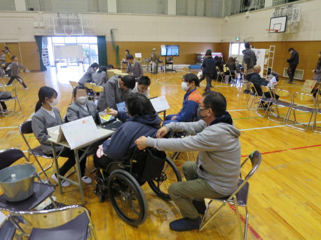 実際に車いすを使い、乗る役・後ろから押す役に分かれ、体験しました。