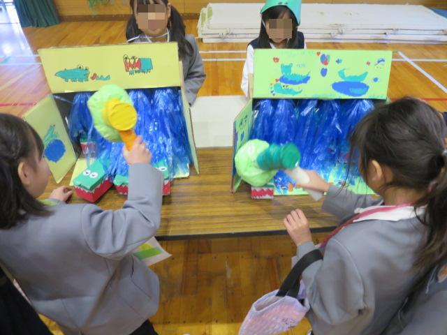 12月19日金曜日、1,2年生が体育館にて「西浦マーケット」を開きました。手づくりのいろいろなお店やゲームコーナーなどがあり、景品やプレゼントもたくさん用意されていました。