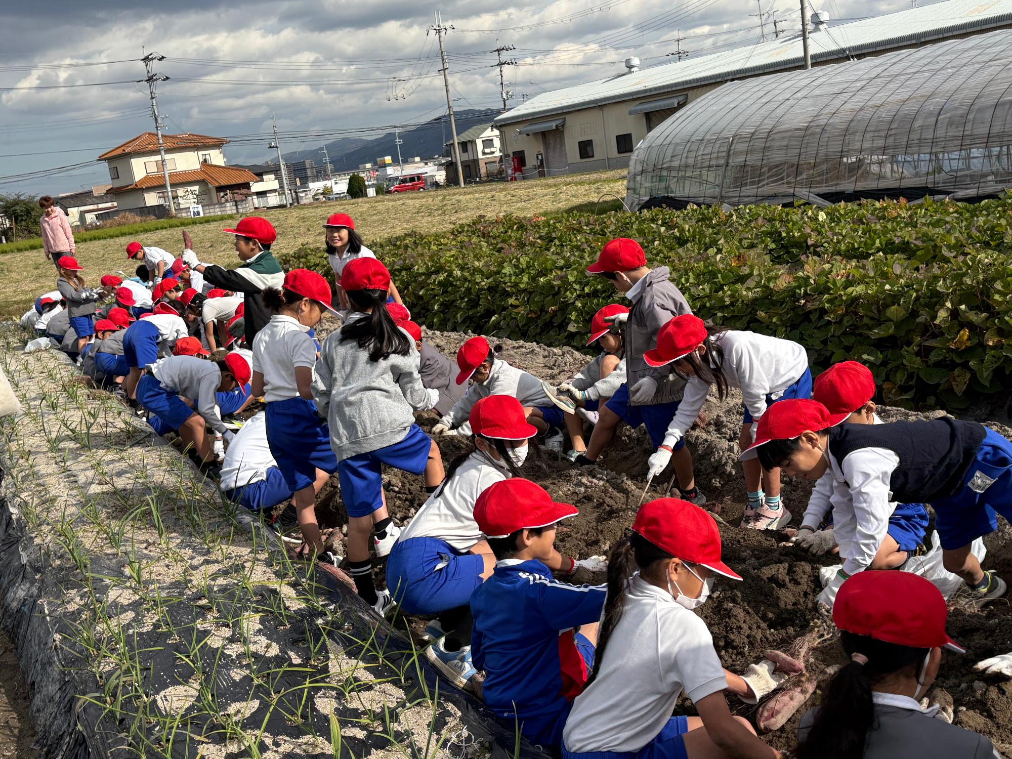 11月18日火曜日、校区内にある畑に招待してもらい、1年生と2年生がおいもほりをしました。おいしそうなおいもがたくさんとれ、子どもたたちは大興奮でした。