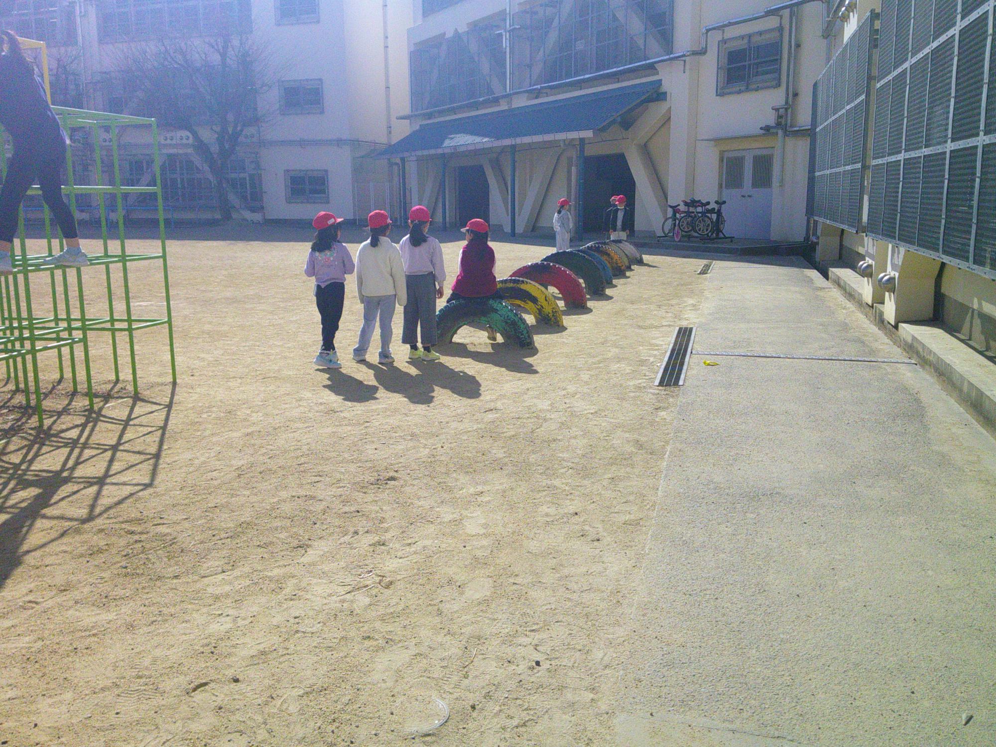 休み時間、外で寒さに負けず、元気にコマ回しやタイヤをピョンピョン跳んでいます。あともう少し、寒さが続きますが、体調を崩さないように頑張りましょう。