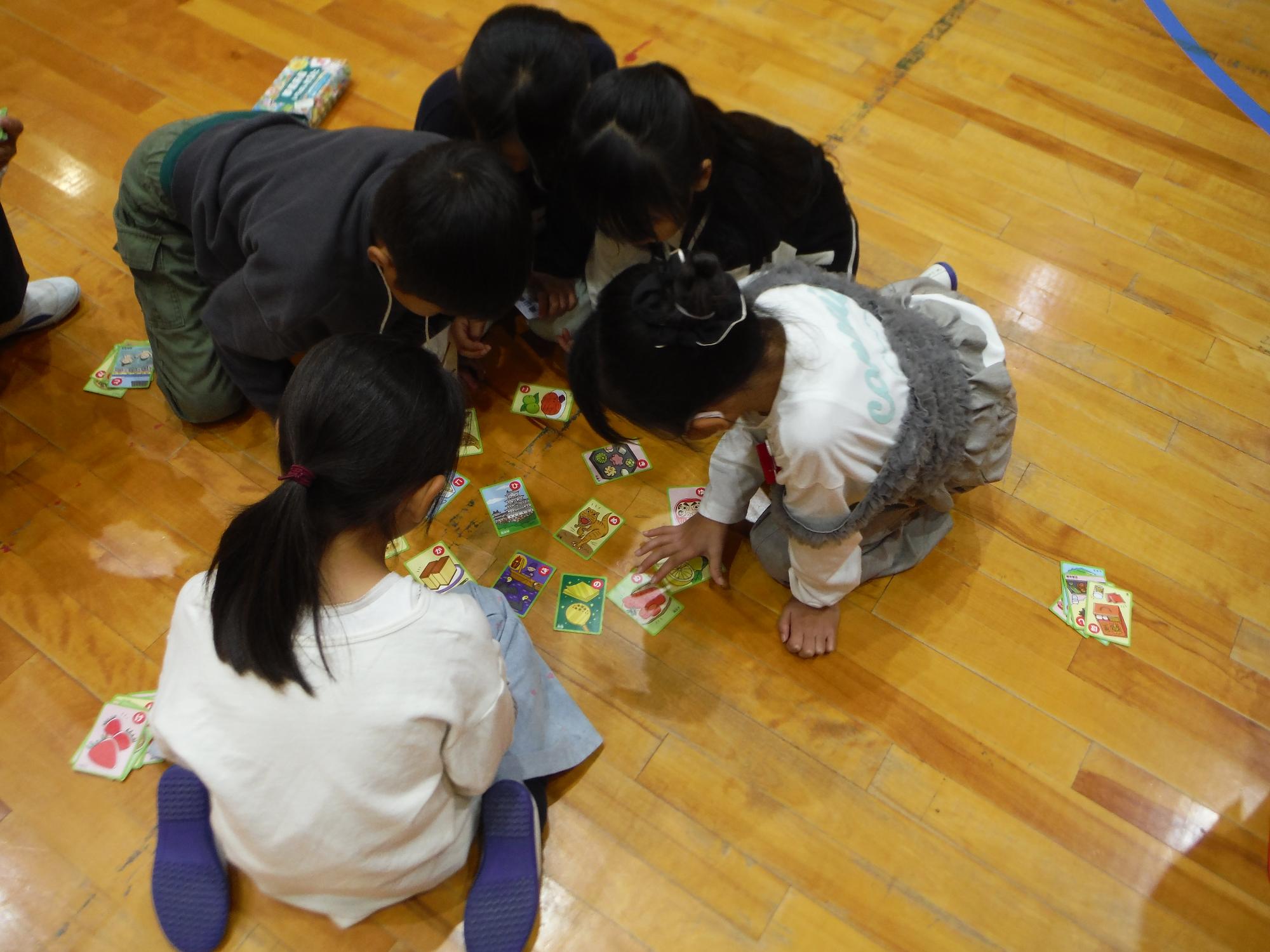 たんぽぽタイムでは、2年生と交流会をしました。小グループに分かれて、カルタや大縄跳びをしました。グループみんなで協力してカルタを並べて遊んだり、声をかけ合って縄を跳ぶなど、どのグループもとても楽しそうに交流ができていました。