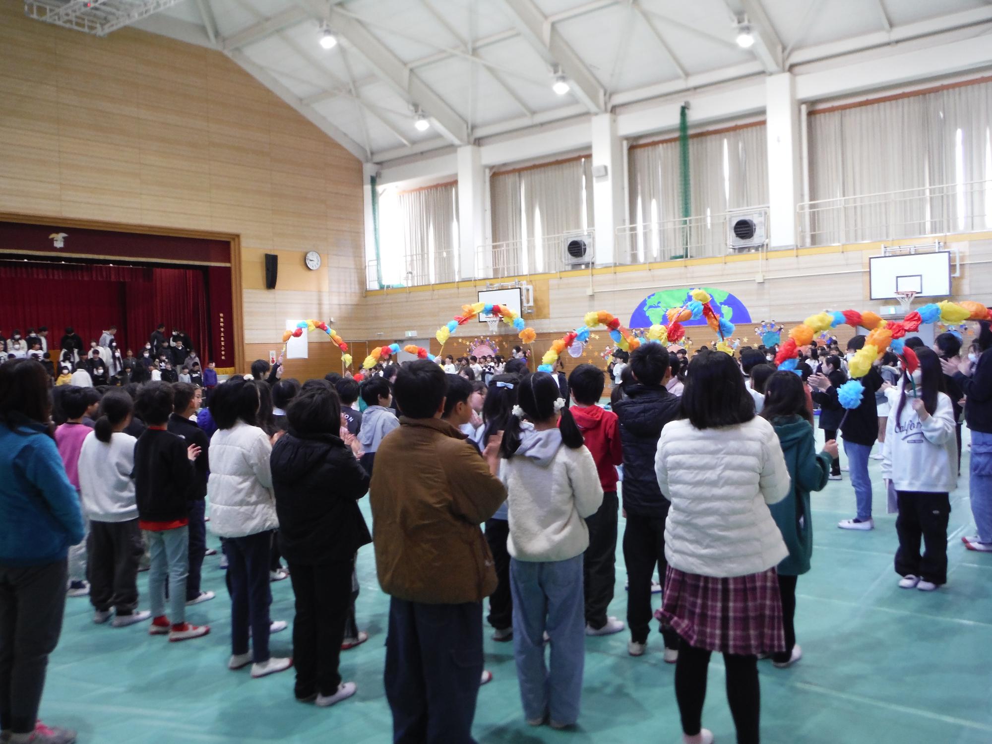 3月11日(水曜日)の一時間目に、6年生へのお別れ児童集会がありました。3年生からは、「小さな世界」と「かいじゅうバラード」の歌を披露しました。この日のために頑張って練習したので、6年生も喜んでくれたと思います。
