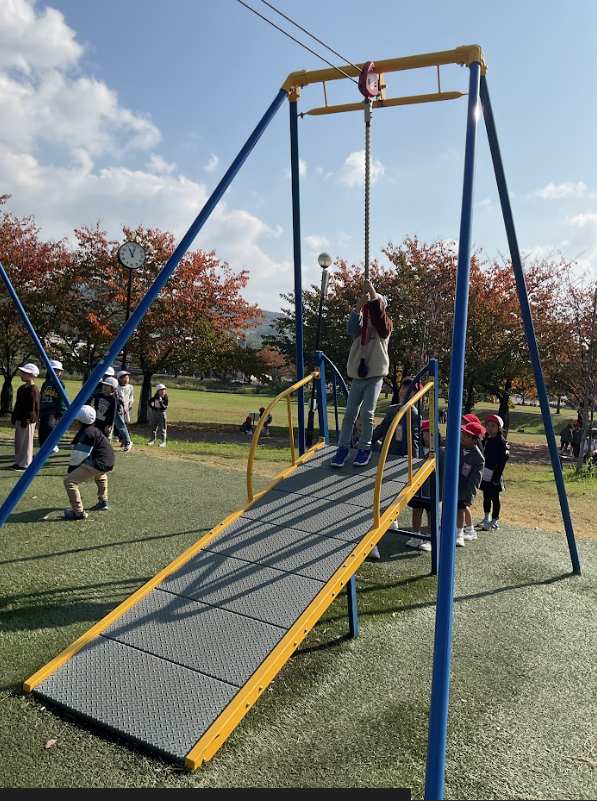 お天気もちょうどいい中、1年生と2年生で電車に乗って行ってきました。とても長いすべり台、ターザンロープ、ブランコなど子どもたちは、楽しそうに遊びまわっていました。お弁当も1年生と2年生、混ぜた班で仲良くいただきました。