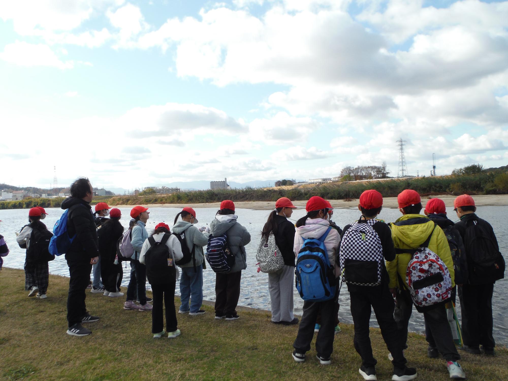 大和川へ社会見学へ行ってきました。川よりも付近の土地の方が低くなっている様子や、石川と大和川の合流地点等を見て、それぞれが気づいたことやわかったことをしおりにメモしていきました。学校で学習するだけでなく、実際に見ることでより学びが深まったと思います。川沿いなので風がきつく、あまりの寒さに予定よりも少し早く帰ってきました。