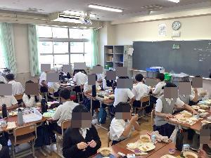 初日は、小学校以来の給食ということもあり、みんな思い出しながら、そしてお互いに声をかけあい、配膳を行っていました。少し、時間はかかりましたが、各クラスおいしくいただきました。