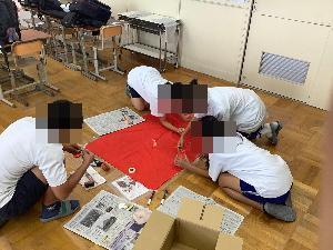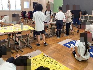 9月19日(金曜日)放課後の教室をのぞいてみると、どの学年も体育祭にむけて「学級旗」づくりに取り組んでいました。