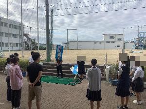 終業式では、校長先生から1学期の振り返りと夏休みに頑張ってほしいことなどのお話がありました。その後の生徒集会では、生徒会より取り組みの中間報告や3年生の修学旅行の報告、1年生の校外学習の報告などが行われました。