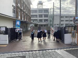 生徒会や専門委員長のみなさんが登校してきた仲間に元気よく「おはよう」とあいさつをしてくれています!