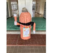 (玄関のマスコット「ハニボー」も体育祭にむけてハチマキをつけました!!)