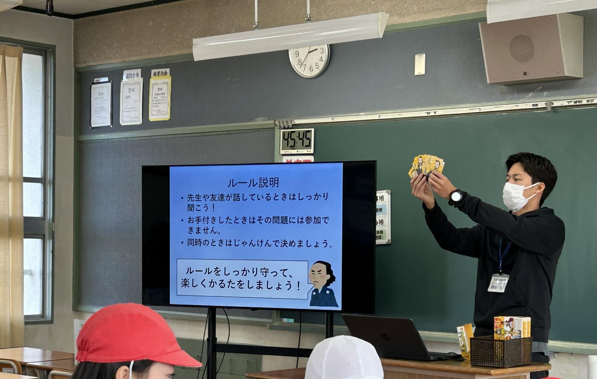 国語は百人一首、家庭科はオレンジジュースを作って添加物について学習など、