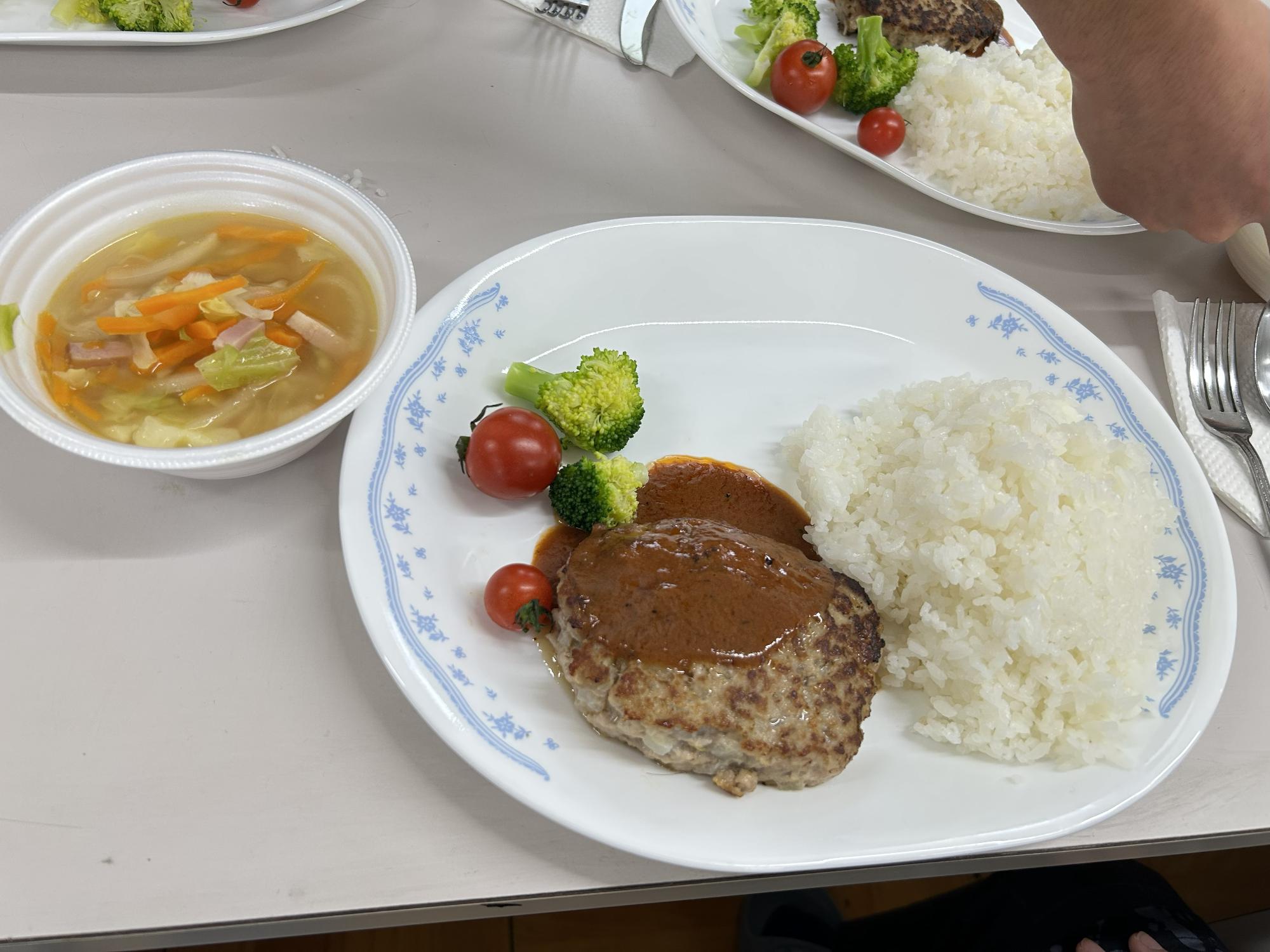 出来上がったハンバーグランチは、担任の先生も一緒においしそうに食べている様子が、とても微笑ましかったです。