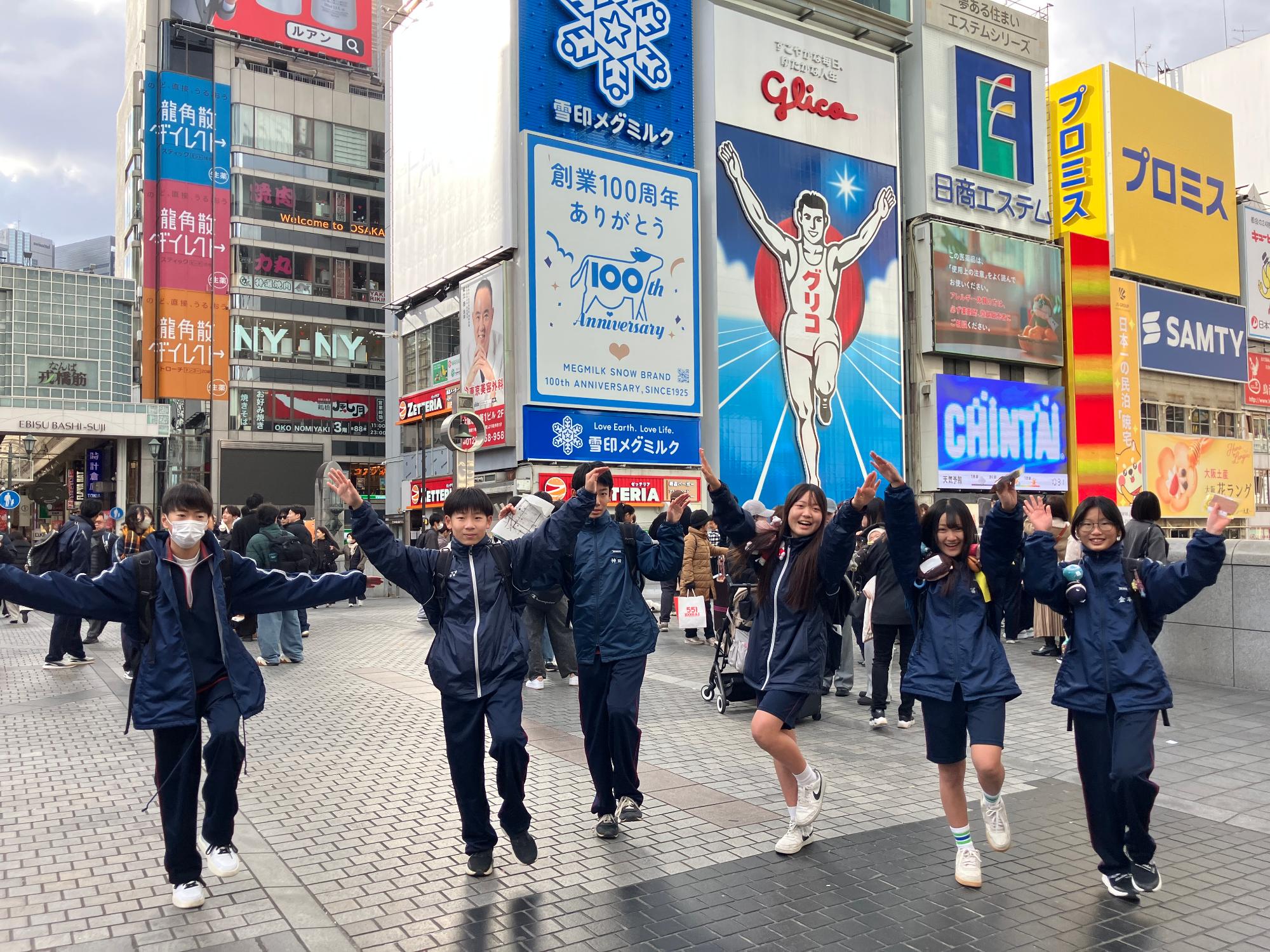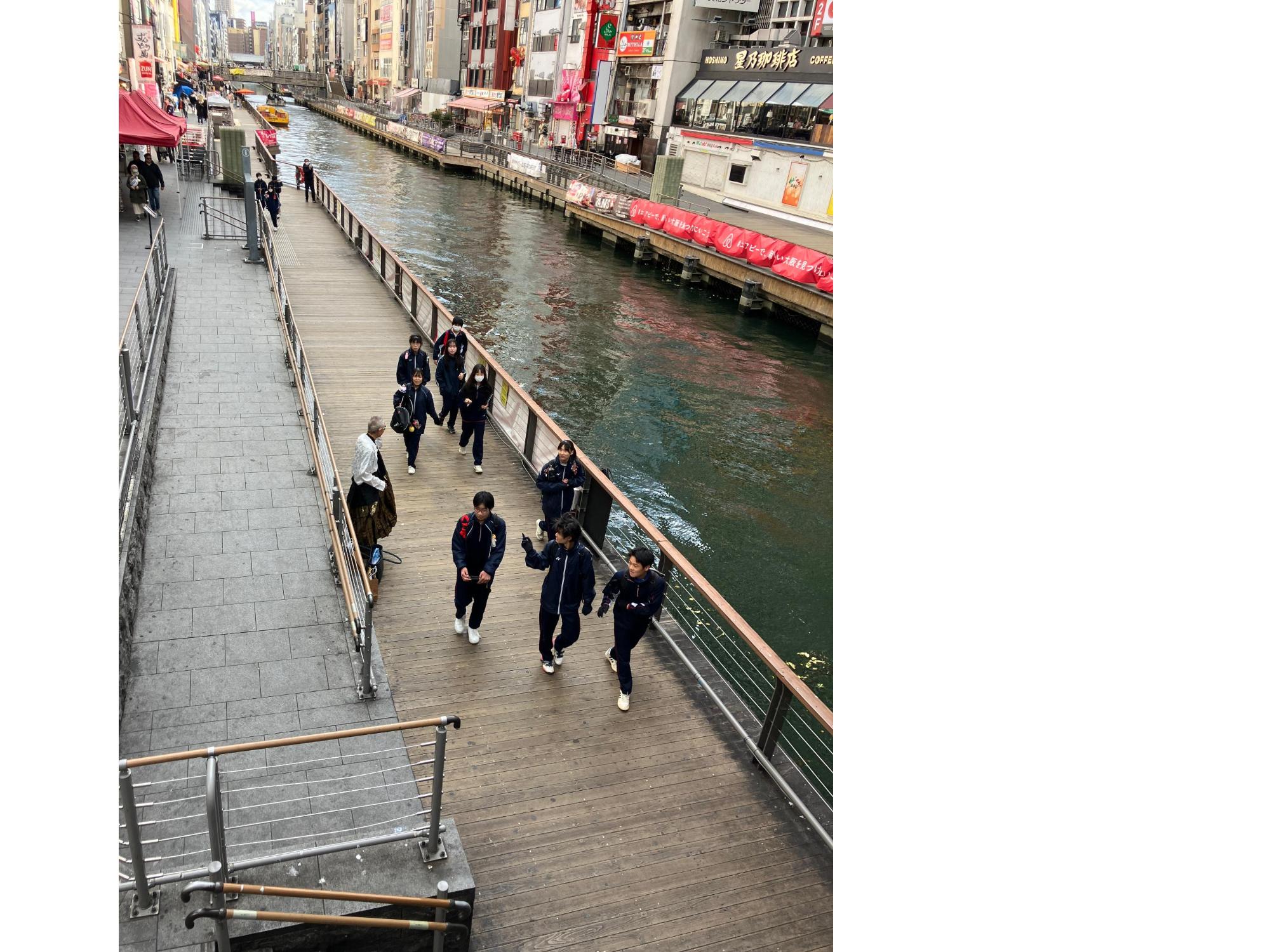 朝早く体育館に集合し、班ごとに電車で難波・心斎橋にフィールドワークに行きました。