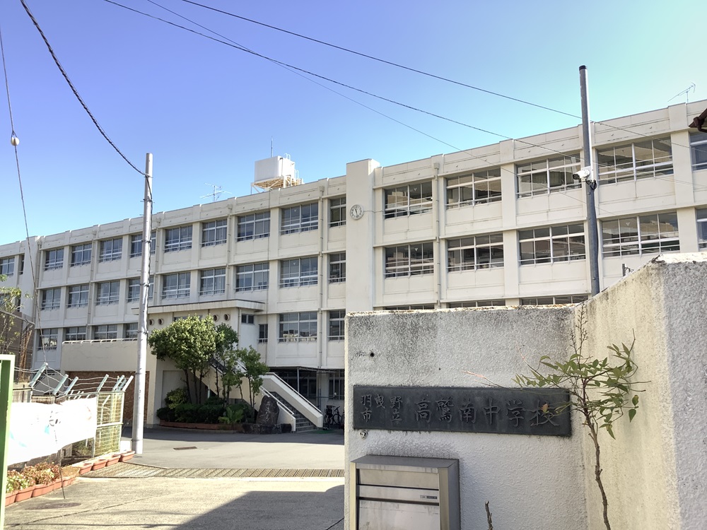 高鷲南中学校は、1977年に高鷲中学校から分離、羽曳野市で五番目に開校しました。通学区域は、高鷲南小学校・恵我之荘小学校と高鷲小学校の一部区域となります。