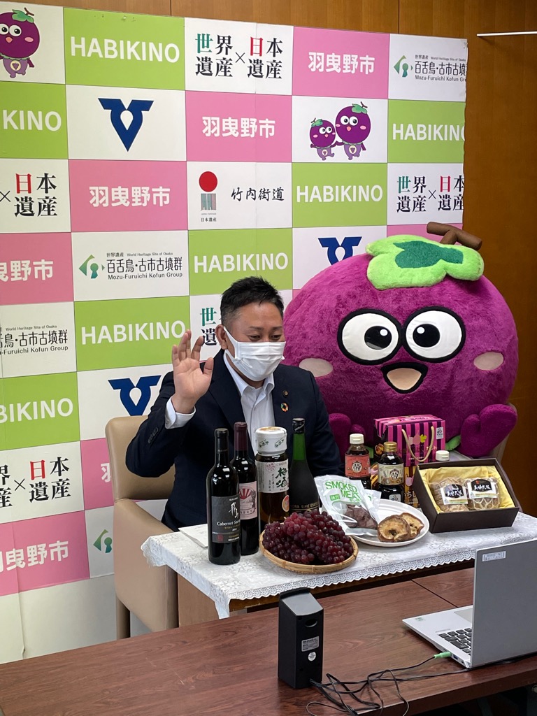 コロナ禍につき、リモート出演となりましたが、羽曳野市の特産品である、ぶどう、チョーヤ梅酒、ワイン、いちじくやお肉はもちろんのこと、跳び箱、プラントポットやムートンシートクッションなどバラエティに富んだ返礼品を本市の魅力を交えてたくさん伝えてきました!