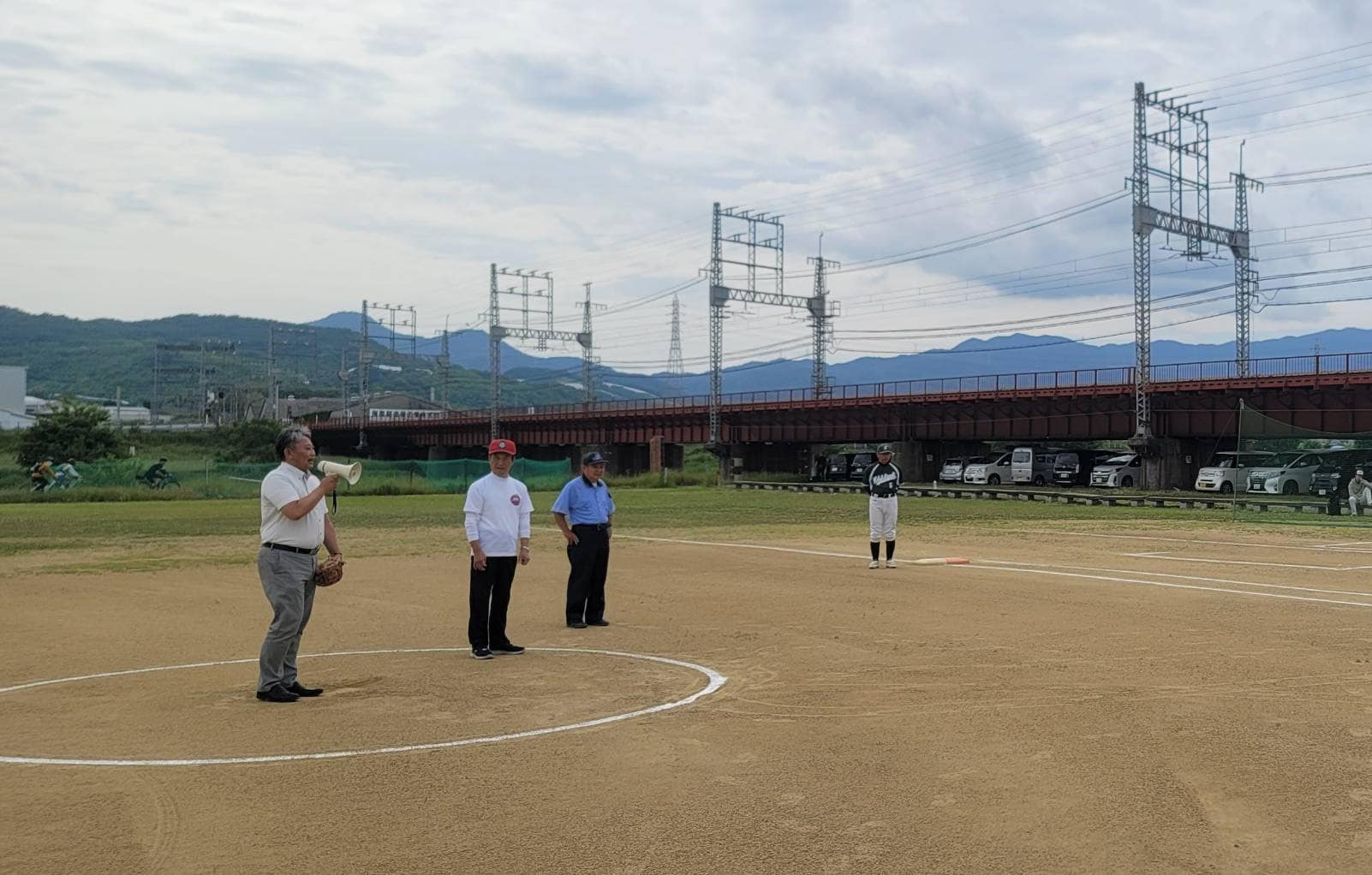 教育長に捕手をお願いしまして、僭越ながら始球式をさせて頂きました。
