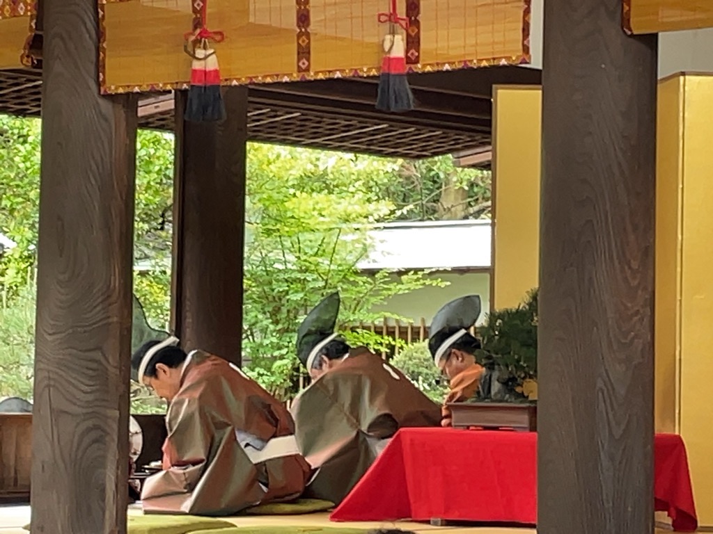 午前10時からの例祭では、舞楽・神楽・武道が奉納され、雅楽の音色が響くと場の雰囲気が一気に変わります。
