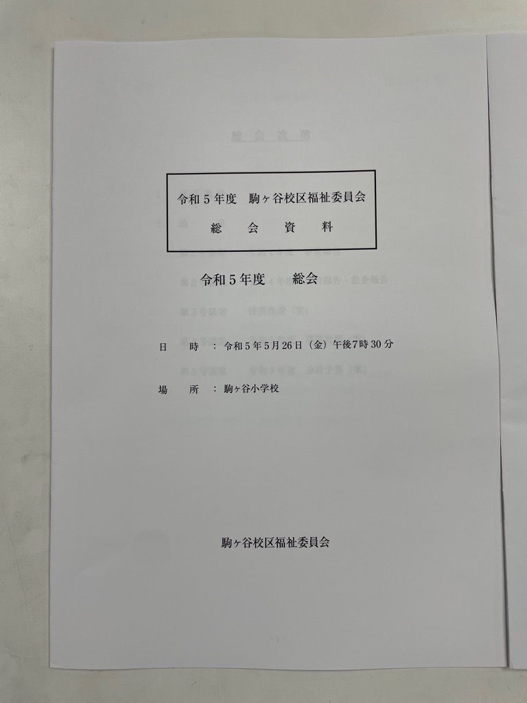 駒ヶ谷校区の青少年健全育成連絡協議会総会及び駒ヶ谷校区福祉委員会総会が駒ヶ谷小学校にて開催され、ご挨拶させて頂きました。