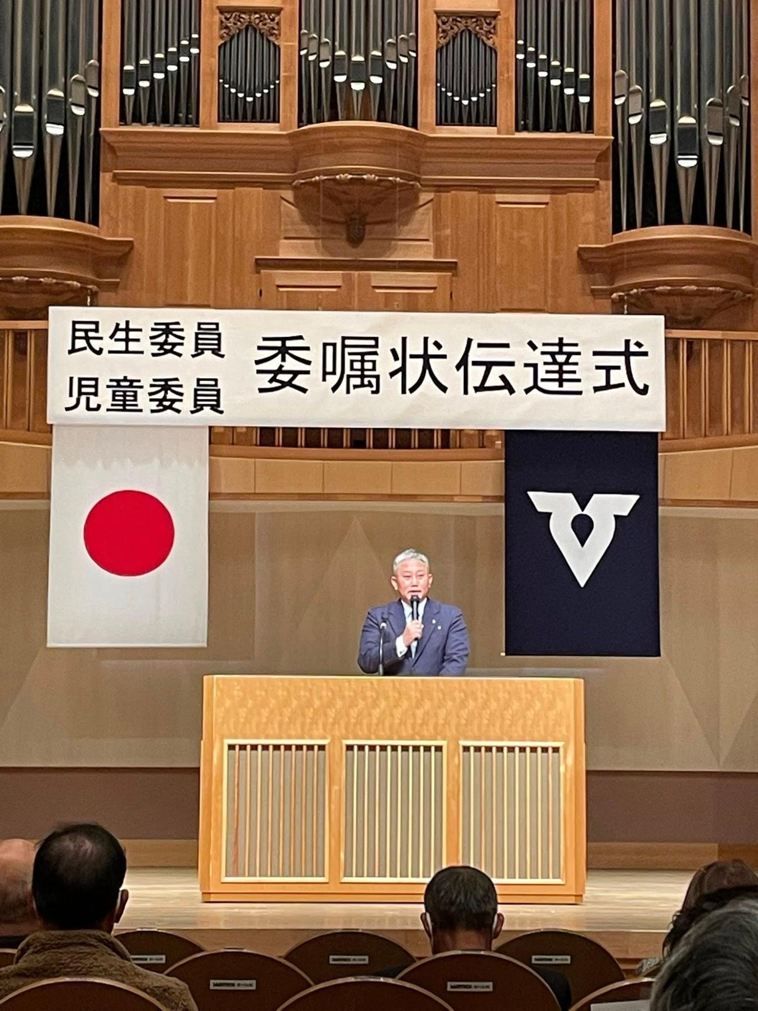 LICはびきのホールMにて、「民生委員・児童委員及び主任児童委員の委嘱状伝達式」が行われ、新たに委員となられるみなさまに委嘱状をお渡ししました。