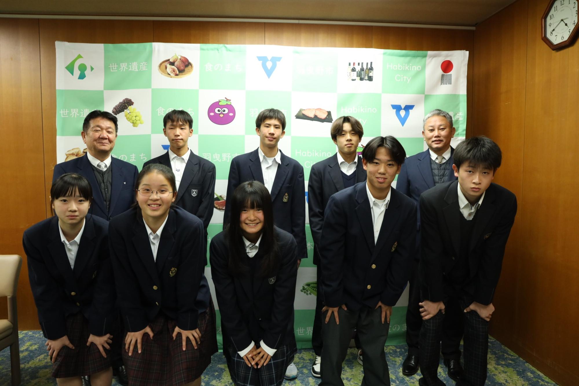 峰塚中学校、河原城中学校、高鷲南中学校より8名の生徒さん達が陸上、水泳、体操の各競技でご活躍され、その報告に市役所を訪問してくださいました!