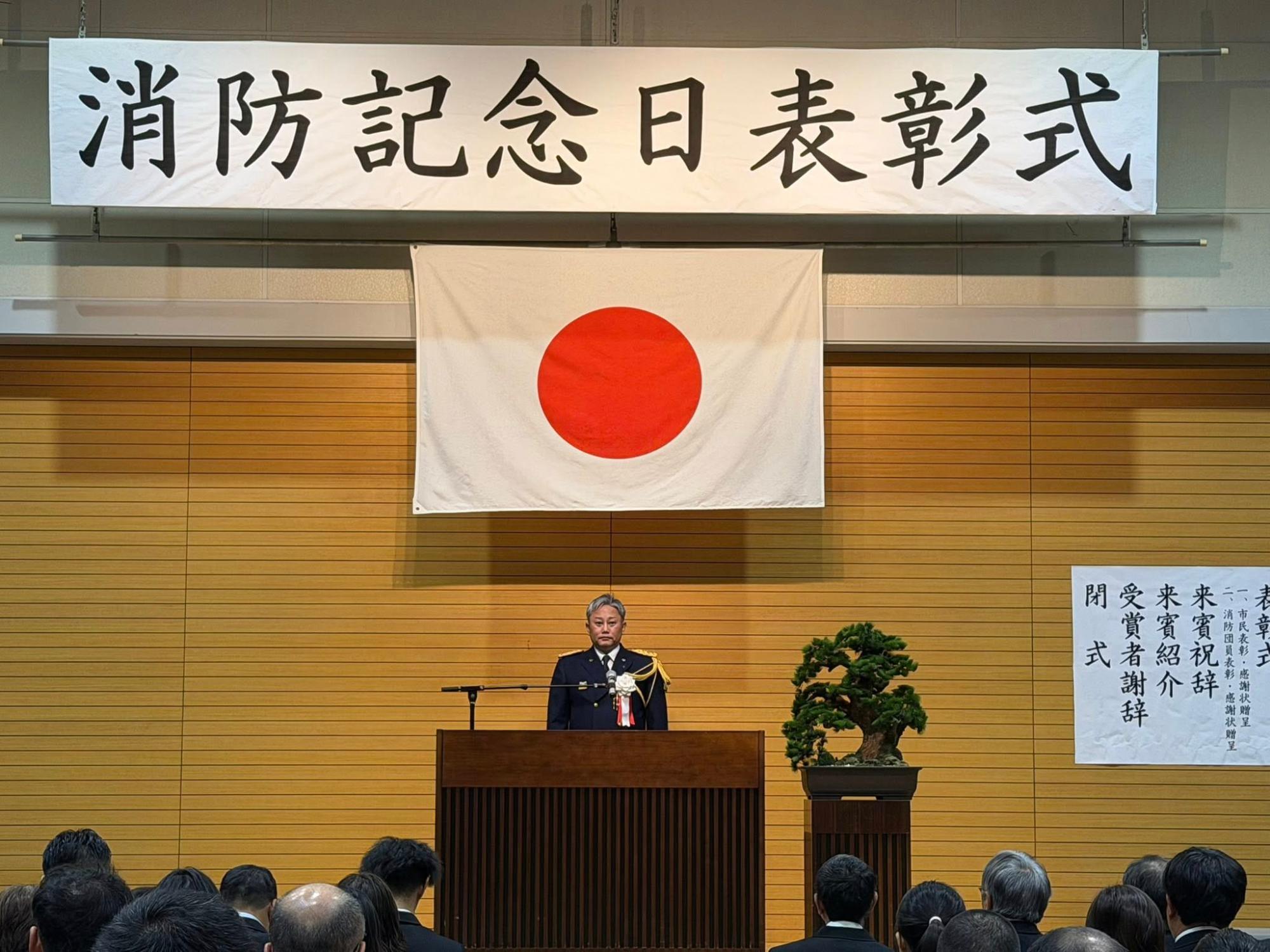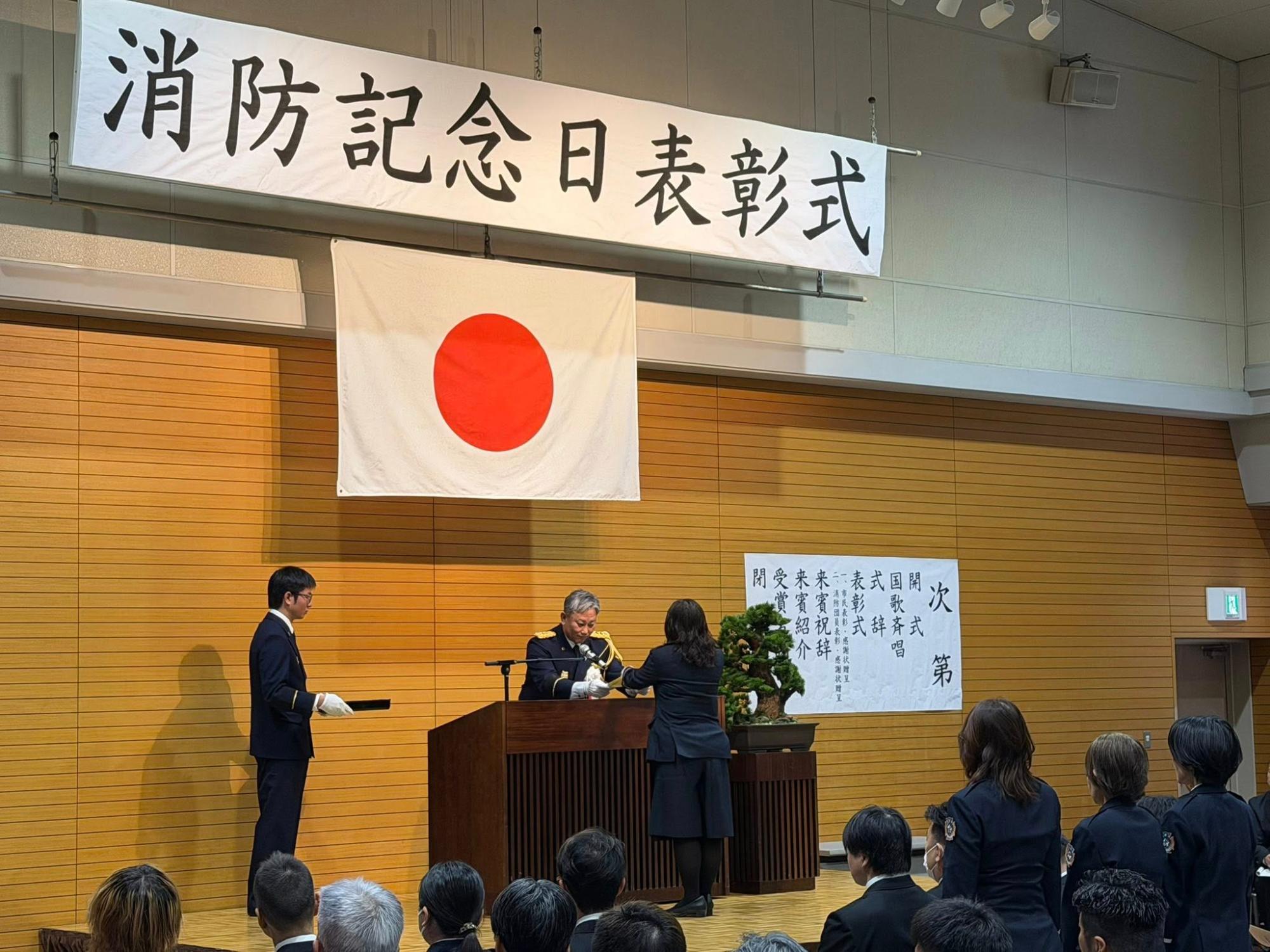 羽曳野市からも日々防火活動に尽力いただいている消防団の皆さまや、町会自主防災組織の皆さまへの表彰や、感謝状の贈呈などが行われました。
