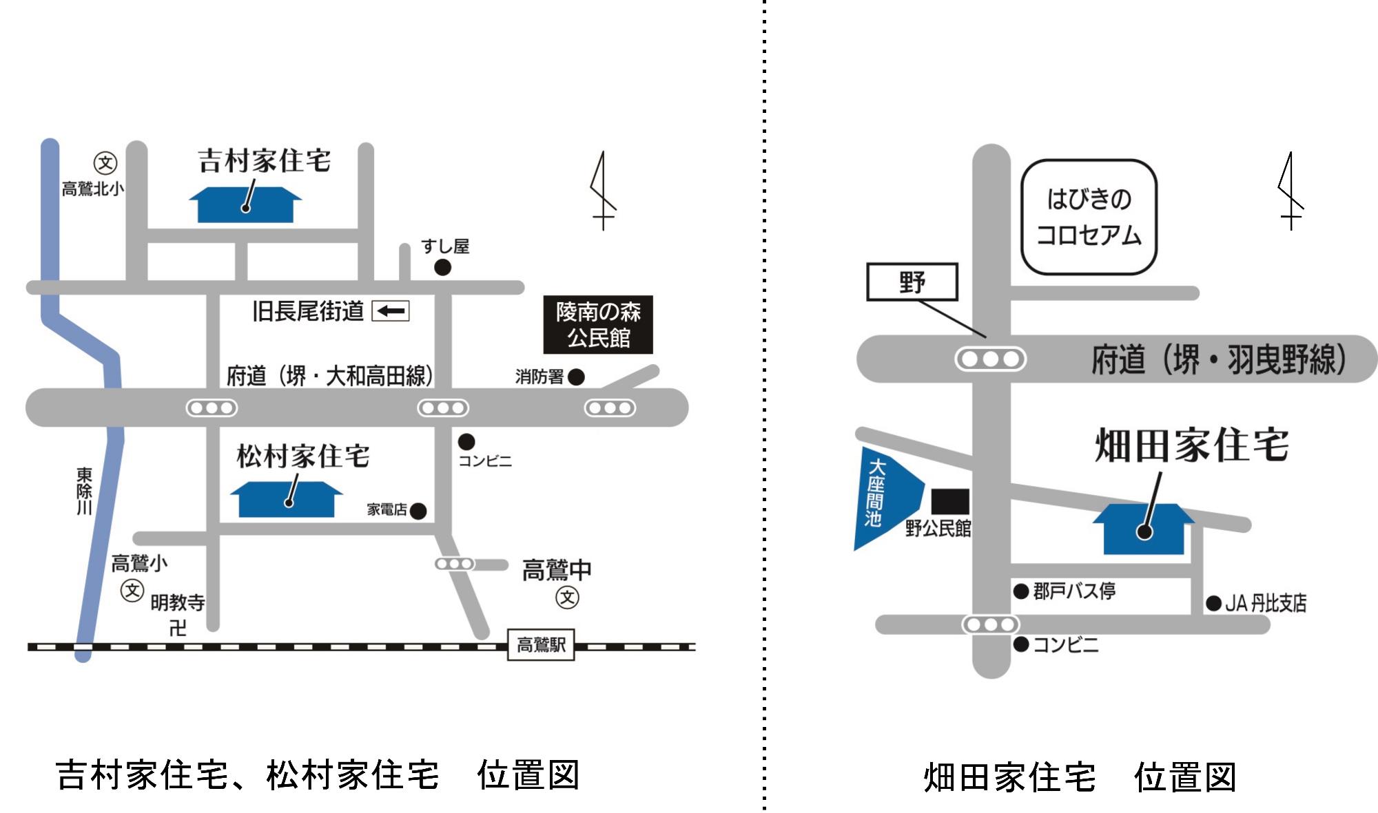 『はびきの古民家の日』として、吉村家住宅(重要文化財)、松村家住宅(国登録有形文化財)、畑田家住宅(羽曳野市指定文化財)の3軒を同時に公開します。3軒すべて見学された方(先着100人)には記念品を贈呈します。この機会に、はびきのの古民家で特別な文化の秋をお楽しみください。